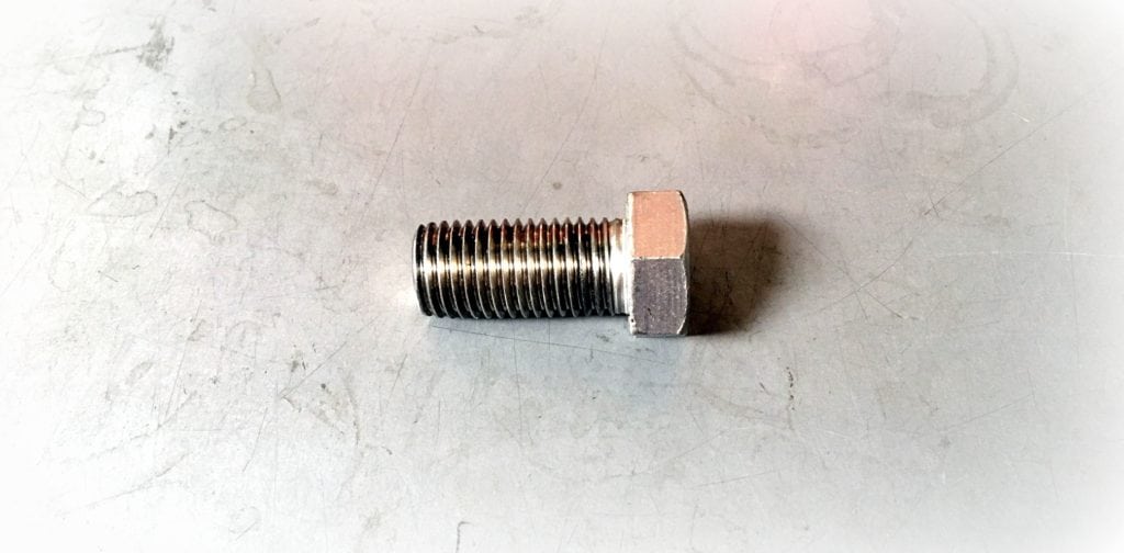 These are custom 316 stainless hex bolts made domestically in the USA in 316 stainless steel material. The thread pitch made this hex head cap screw a custom production deal, at 13/16-10 fully threaded. The thread was rolled rather than cut and the head width across the flats was set to 1-1/8 inches, with the head height set to 15/32″. Material certs and a certificate of conformance was available upon request.