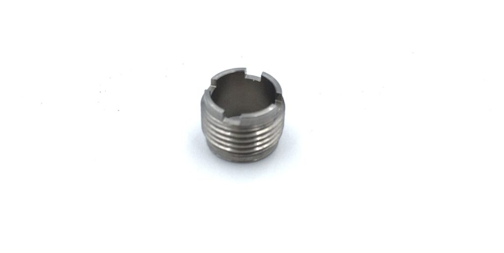 These are DFARS compliant custom A286 stainless steel castle nuts manufactured domestically in the USA for our aerospace customer. They incorporate 7/16-26 2A thread and internal diameter of .328 +/- .005″. The cross slots measure .090 +/-.005″ and unthreaded shoulders both measuring .394″+0.000/-.004 in diameter by .063″ +/-.01. Full certs including a FAIR are required as a part of the deliverable package.