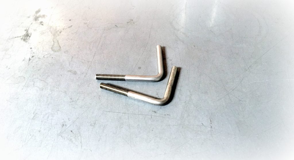 Pictured here are custom bent anchor bolts made domestically using 316 stainless steel material. 10-24 thread is used on one leg at approximately 7/8″ in length. An 85 degree bend was incorporate per customer’s print, with the thread containing leg measuring 1-3/4″ and the short leg measuring 1-1/2″. Lead time for smaller quantities (in the hundreds) is 5-7 business days if plain 316 stainless steel material is used.