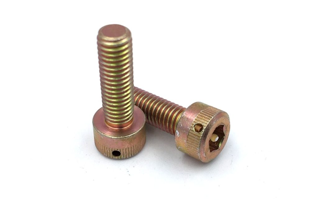 These custom class 12.9 metric aerospace screws with cad plated finish were manufactured domestically using DFARS compliant 4140 alloy steel material per ASTM A108. 1,100 pieces were produced measuring 5M X 0.8MM X 16.15MM +/0.03MM. 6G class thread was rolled and the head incorporated a cold formed socket drive, fine knurl feature, and a .050″ diameter through hole. Parts were run through a cadmium plating process at .0003/.0005″ type II, Class 2 per AMS QQ-P-416, followed by non destructive magnetic particle inspection testing per ASTM-E-1444. Full certs and FAIR was provided with the parts.