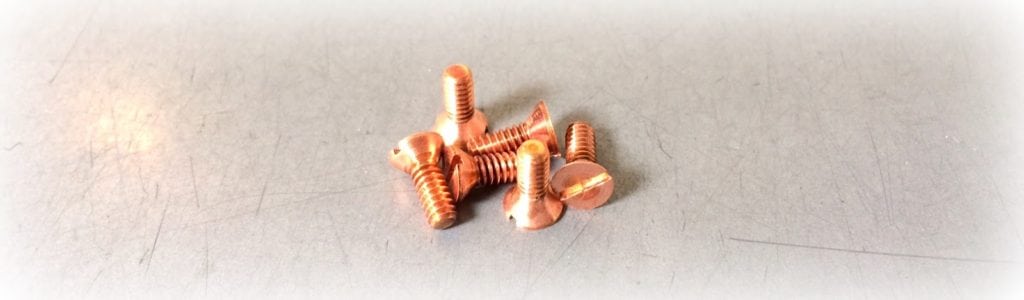 These are small 4-40 X 5/16 custom copper machine screws supplied at just 100 pieces.  Small quantity custom fastener orders like this are a daily routine for us and we can supply specials to print in just about any material.  Copper 110 material was used on this specific custom flat head machine screw and we were able to deliver the parts to our customer within 10 business days from order.