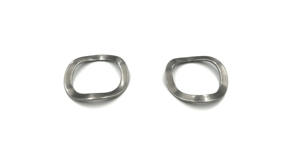 These custom 3-wave washers were manufactured domestically in the USA using DFARS compliant 301 stainless steel material. The outside diameter was set to 1.325″ and the inside diameter to .975″. Raw material thickness was at 0.05″ +/-.015. Full certs were provided with the parts for our aerospace customer.