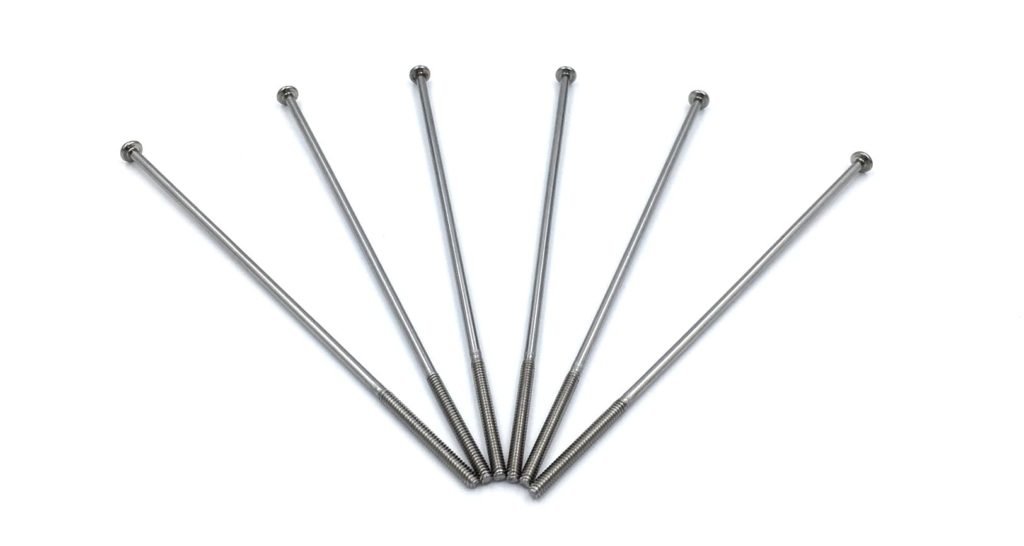 Almost 20,000 pieces of these custom long machine screws were manufactured for our injection molding customer, made using 302 stainless steel material with plain finish. 4/40 thread was incorporated with 1″ of usable thread minimum on each screw. Overall length was set to 4.625″-4.725″ and the head was a standard philips pan head for a #4 machine screw. Concentricity was the more difficult aspect of these parts, with the combination of length and #4 diameter making it almost impossible to keep the parts straight after packaging.