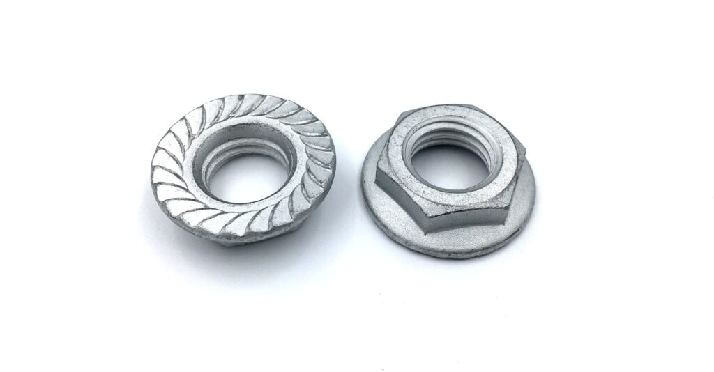 We had tens of thousands of these custom low profile serrated flange nuts manufactured for our construction customer using Grade 5 steel material with Dacromet zinc flake finish. 1″-8 thread was tapped with 2B thread fit prior to plating and the low profile height was set to .437″ max. Flange diameter was set to 1.46-1.50″, which is to standard 1″ diameter flange nut specifications. Full certs were provided with the parts, including 3rd party testing results for proof load, tensile strength, core hardness, and raw material composition.