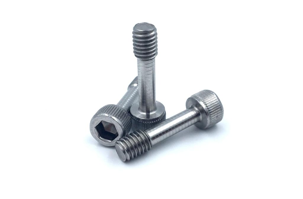 These custom stainless captive screws were made using standard off the shelf 10-32 X 3/4″ fully threaded socket cap screws in 18-8 stainless steel material. The .130-.150″ diameter shoulder was turned down leaving approximately 1/4″ of thread at the end of the screw. With a relatively loose tolerance on the shoulder diameter this job was a relative breeze and our internal part number is GM-1104-I.