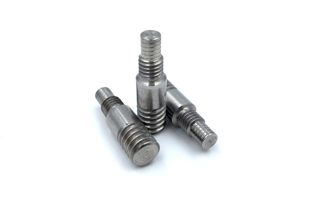 We provide our customer a small batch of these custom stainless steel double end studs at just over 100 pieces. They wanted to replicate existing parts but did not have any drawings or prints. We used a sample piece provided to replicate all dimensions to a +/-.01″ tolerance. 1/4-20 thread is incorporated on the larger diameter side and 10-32 on the other, with approximately half the thread turned down into a dog point.