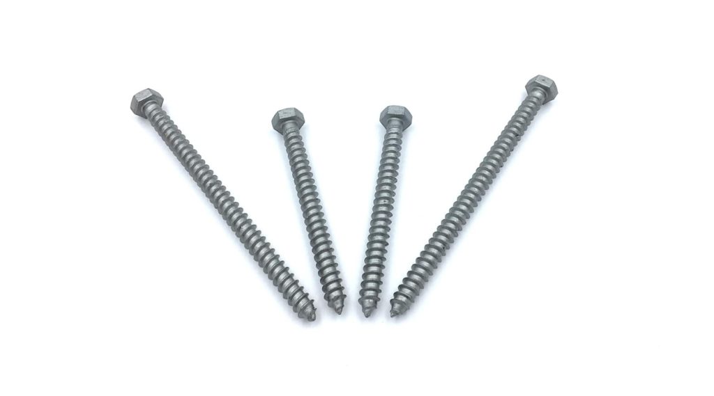 We had 10,000 pieces of each size of these custom stainless steel fully threaded lag screws supplied to our construction customer.  304 stainless steel material was used and the parts were manufactured to ASME B18.2.1 other than the full thread feature requirement.  Tensile strength was required to surpass the minimum 90,000 psi requirement and both the material composition and the tensile strength (axial) were tested at a third party lab with full certs.  The two sizes pictured here are the 3/8-7 X 4″ and 3/8-7 X 5.5″.  The finish on both sizes is Geomet 321 with Plus L top coat.