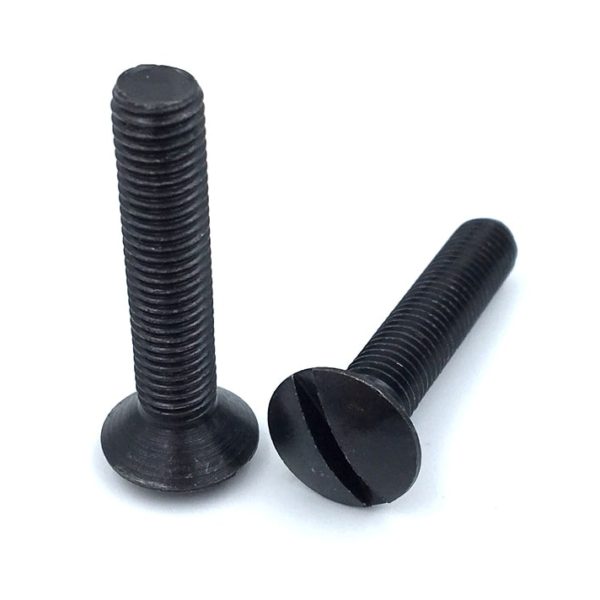 Custom Slotted Round Metric Screws – M7 X 1.0 X 34.5MM In Mild Steel With Black Oxide