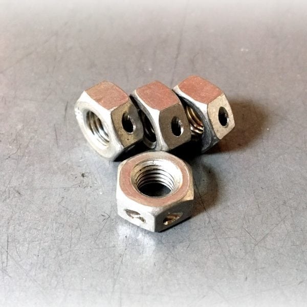 Stainless Steel Custom Hex Nuts With A Hole Drilled Through One Corner – 1/4-28 Thread