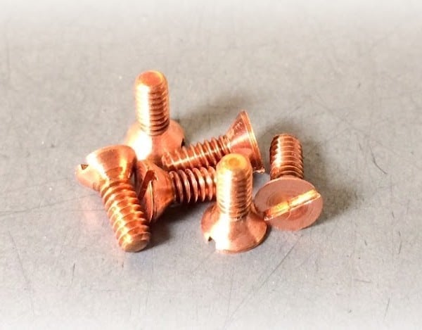 Custom Slotted Flat Machine Screws in Copper 110 Material